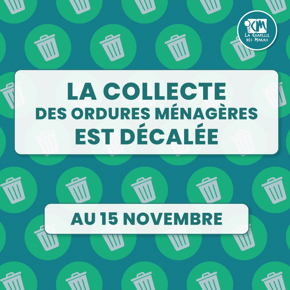 La collecte des ordures ménagères du vendredi 14 novembre sera décalée au samedi 15 novembre