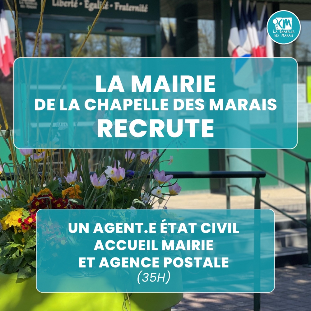 La Chapelle des Marais, commune de Loire-Atlantique recrute un.e agent.e de gestion de l’Etat Civil et agent d’accueil mairie et agence postale